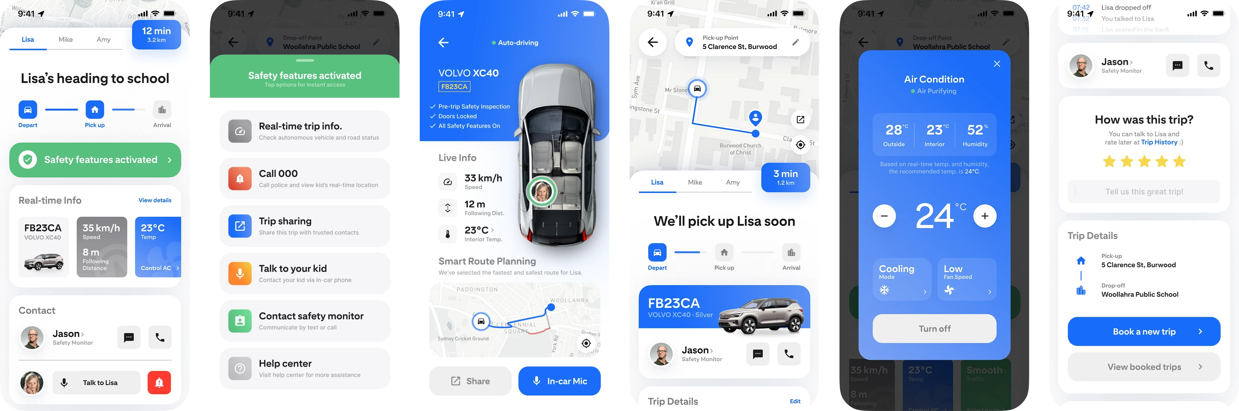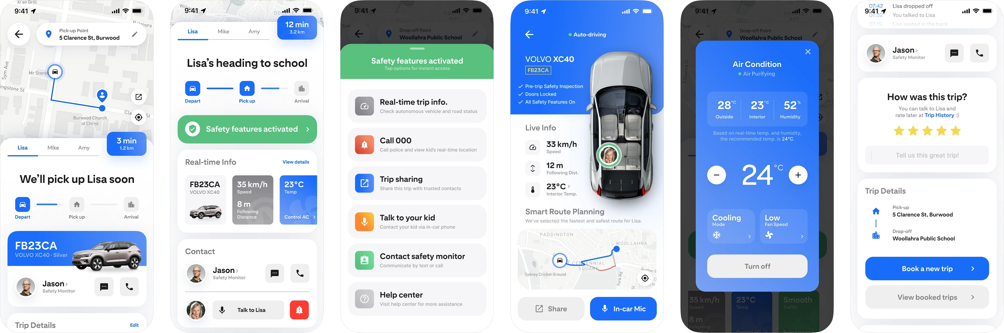My task was to design the in-ride phase of the user journey, covering the moments when parents interact with the app during pickup, ongoing trips, and arrival.