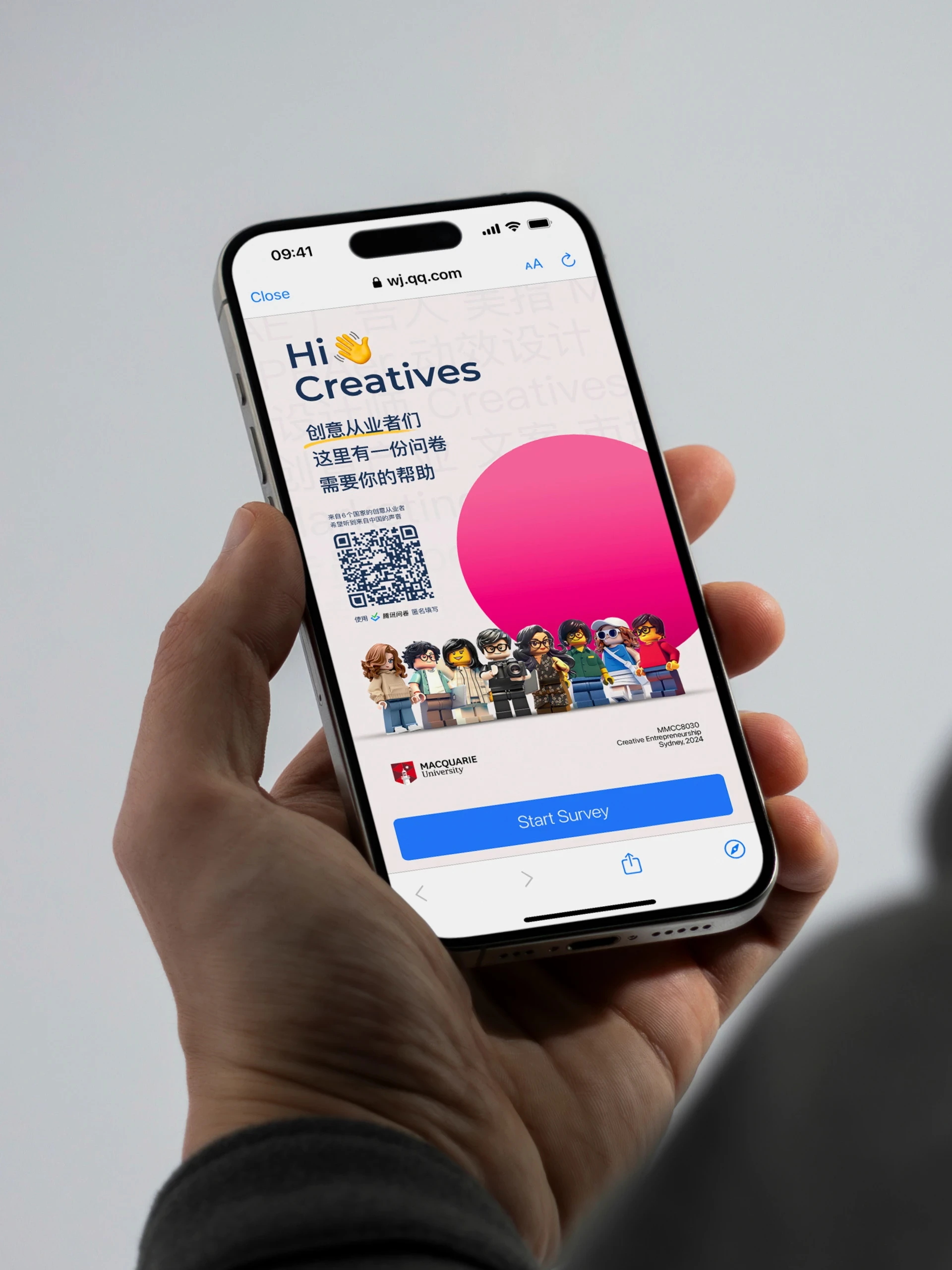 I designed a poster for the Chinese version of the survey and shared it via WeChat Moments, a social feed among friends within China’s most widely used social platform. This helped broaden our reach across the creative community.