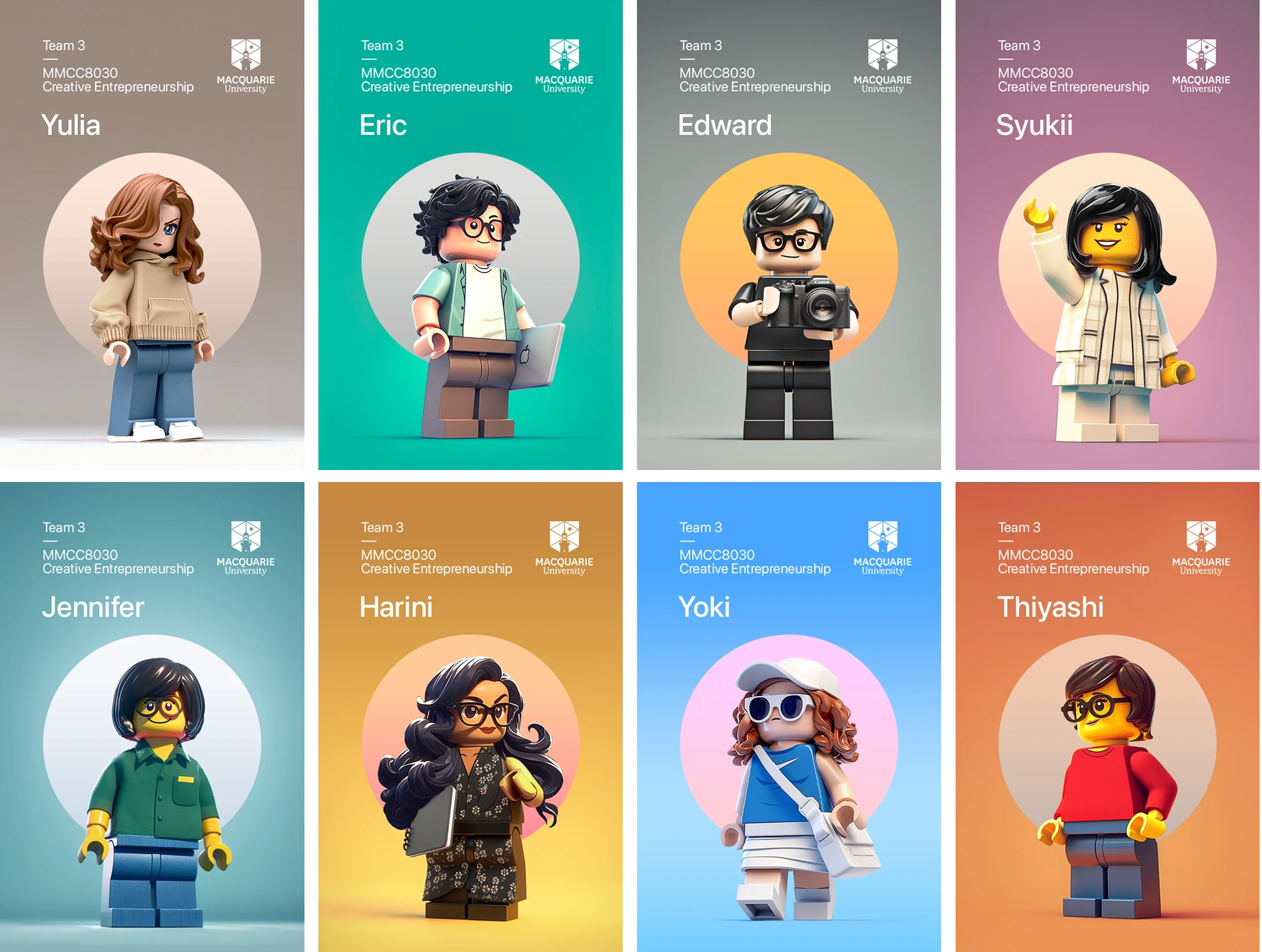 Inspired by our shared learning experience with LEGO® Serious Play in the Creative Entrepreneurship course, I created custom virtual minifigure portraits of each team member using Midjourney and Photoshop. It was a playful way to spark creativity and build a strong team connection from day one.